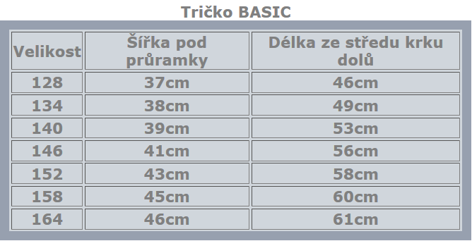 Trička jsem sice měřila, ale bohužel je každá barva trošku jinak široká i dlouhá, hlavně černá je podstatně menší. Berte tedy míry s rezervou, nejsou přesné. Děkuji za pochopení. Slávka z Vláčku