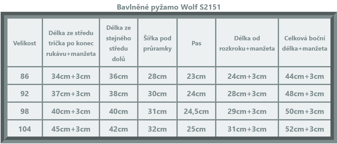 Upozornění:Pyžamo je bavlněné, proto je třeba počítat s vysrážením o cca 2cm na délku.