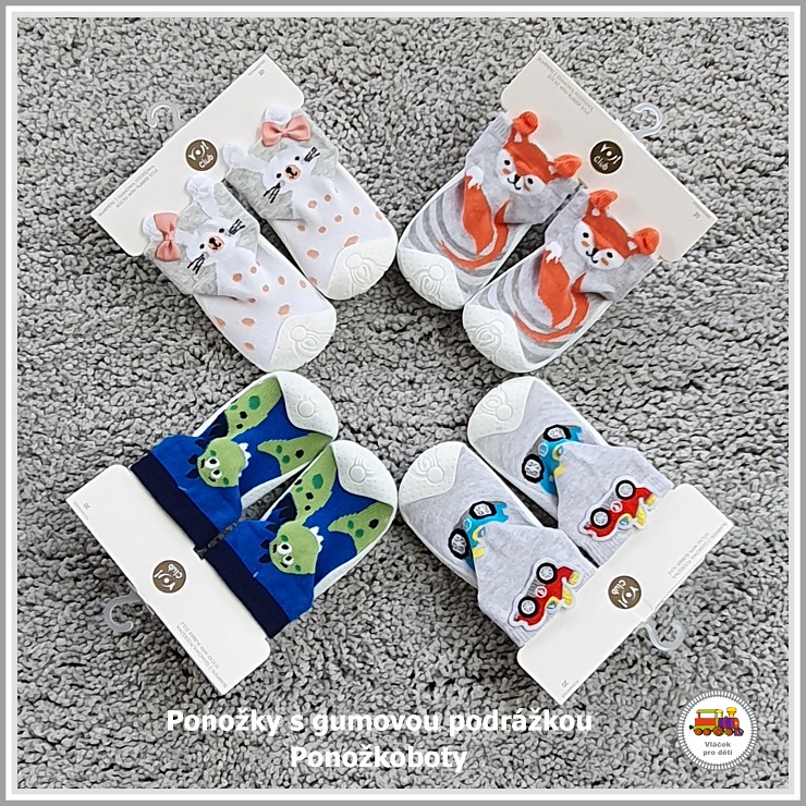 "Ponožkobotky" YO jsou lehké, pratelné a pohodlné, vhodné jako capáčky pro první krůčky i pro již běhající a dovádějící batolátka.