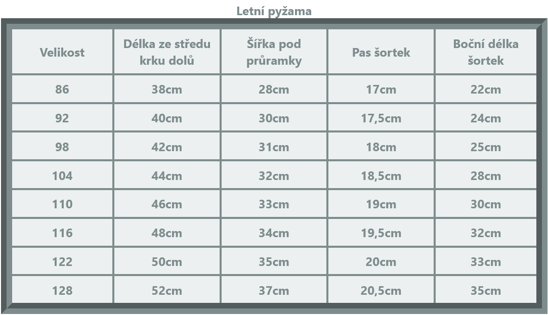Upozornění:Dětské pyžamo je bavlněné, proto je třeba počítat s vysrážením o cca 2cm na délku.