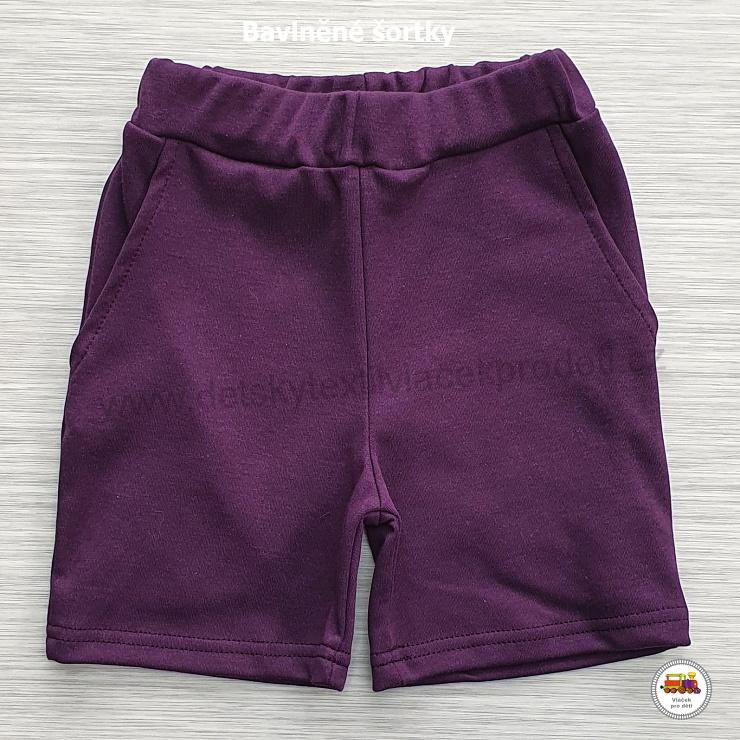 Dětské šortky/kraťasy /948/ TMAVĚ FIALOVÉ jednobarevné vel.110