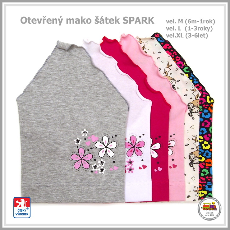 Dívčí, bavlněný, letní, otevřený šátek SPARK - dobře kryje uši ve větrném počasí, velmi slušivý, vhodný pro malou i velkou slečnu.
