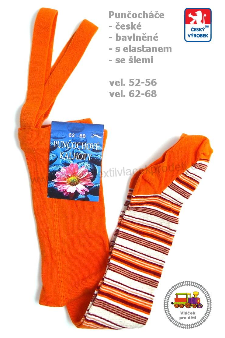 - Punčocháče bavlněné s elastanem oranžový proužek vel. 62-68