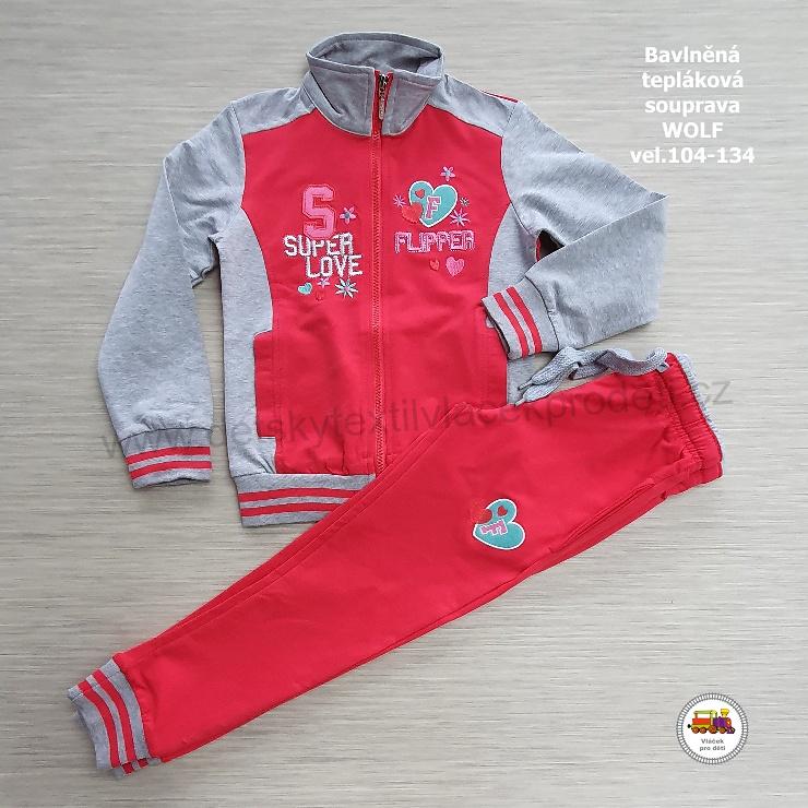 - Dívčí tepláková souprava bavlněná Wolf M2651 červenošedá vel.116