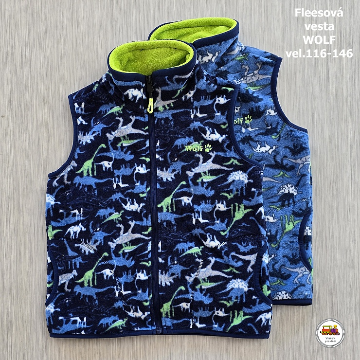 - Fleesová vesta WOLF B2346 Dinosauři na modré vel. 146