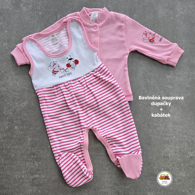 Kojenecká souprava bavlněná Grafix /627/ Berušky na růžové vel. 56