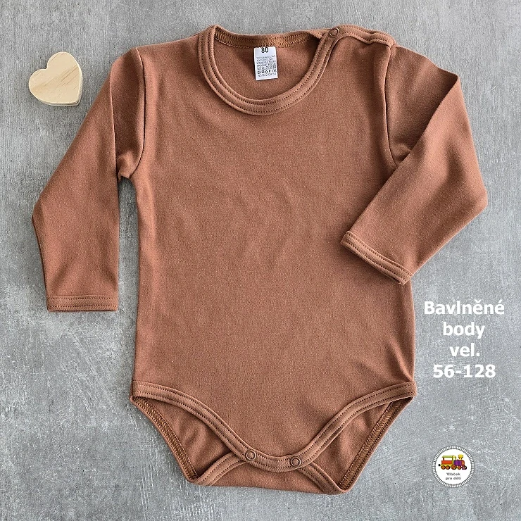 Kojenecké body bavlněné /9689/ Jednobarevné hnědé vel. 80Skladem 6 ks140,00 Kč/ ks115,70 Kč bez DPH