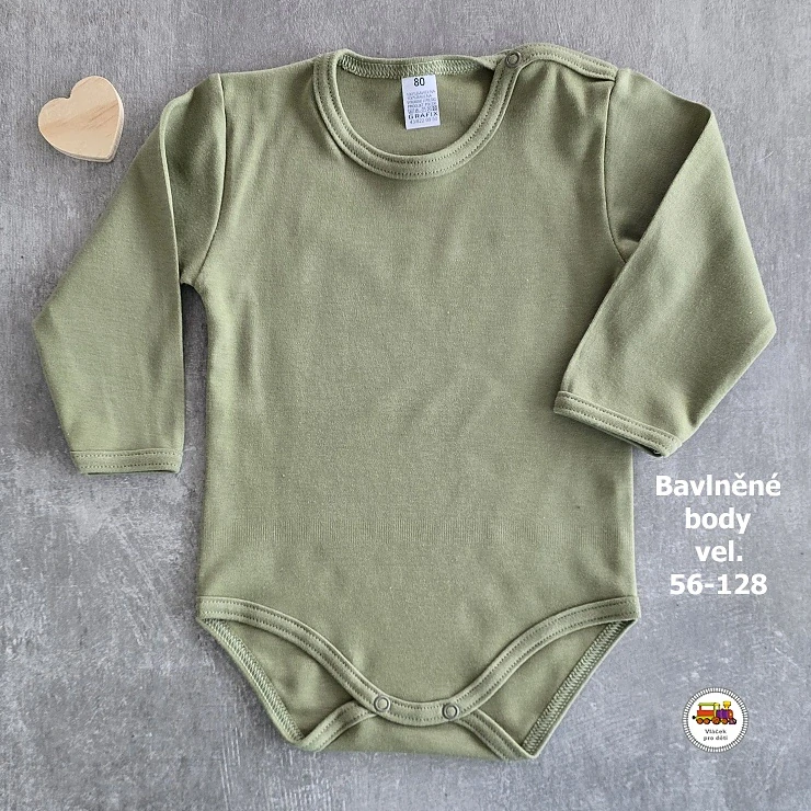 Kojenecké body bavlněné /9708/ Jednobarevné khaki zelené vel. 86Skladem 5 ks150,00 Kč/ ks123,97 Kč bez DPH
