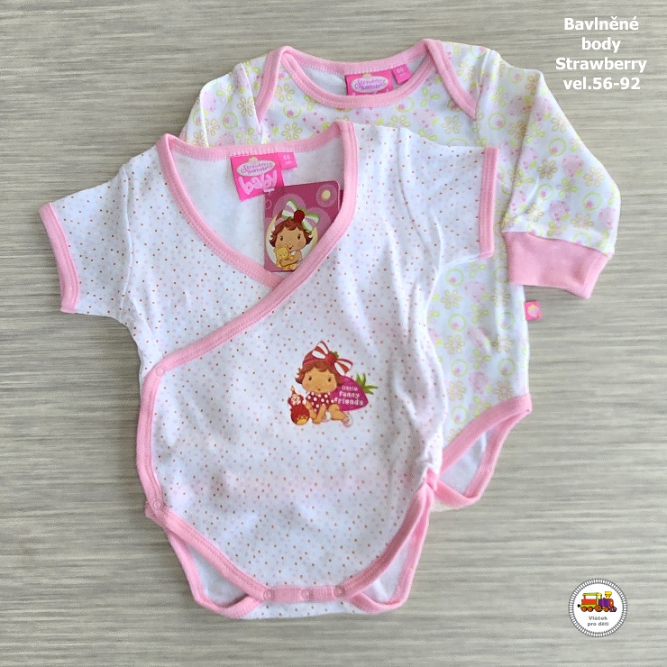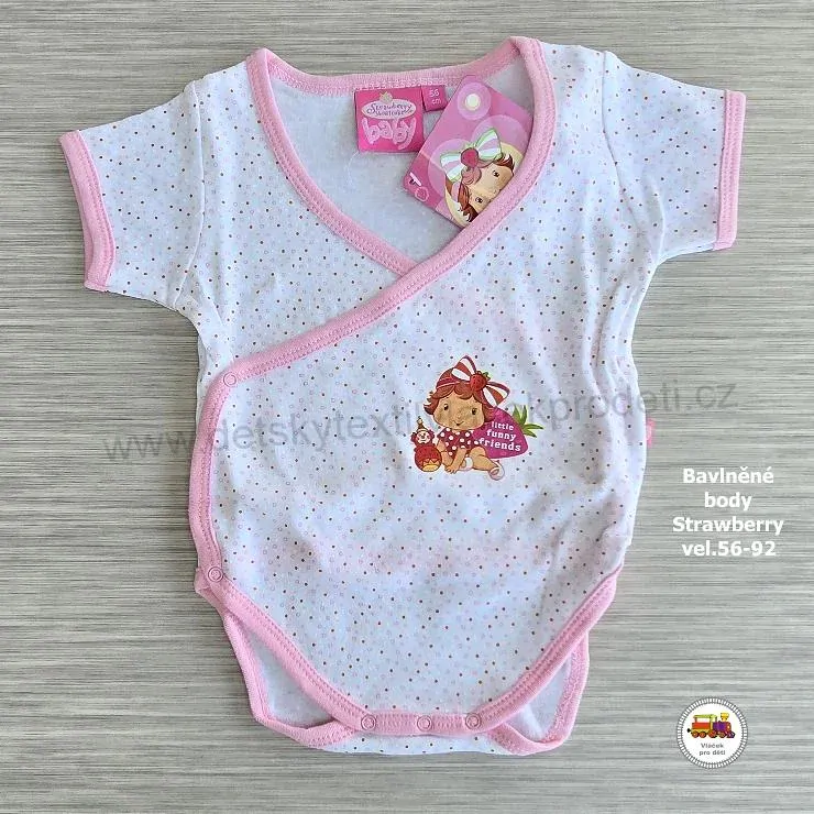 - Kojenecké body bavlněné zavinovací /24/ Jahůdka - Strawberry krátký rukáv vel. 74