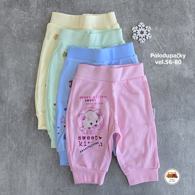 NOVINKA-Kojenecké bavlněné polodupačky - tepláčky vel. 56, 62, 68, 74, 80Skladem 1 ks65,00 Kč/ ks53,72 Kč bez DPH