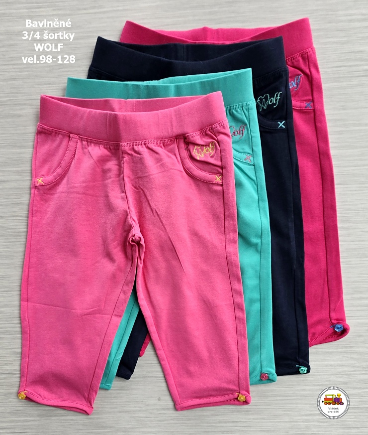 Bavlněné 3/4 dívčí šortky Wolf - šortky pod koleno s knoflíčky na bocích.