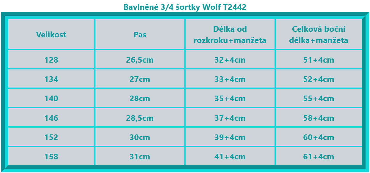 Bavlněné 3/4 dívčí šortky Wolf - šortky pod koleno s manžetou.