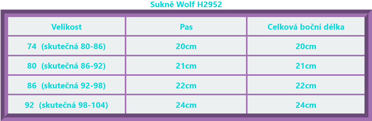 Značka Wolf šije velmi kvalitní věci...a ve skutečnosti o dost větší než jiné firmy, proto se nebojte velikosti, slečna sukni vynosí velmi dlouho.