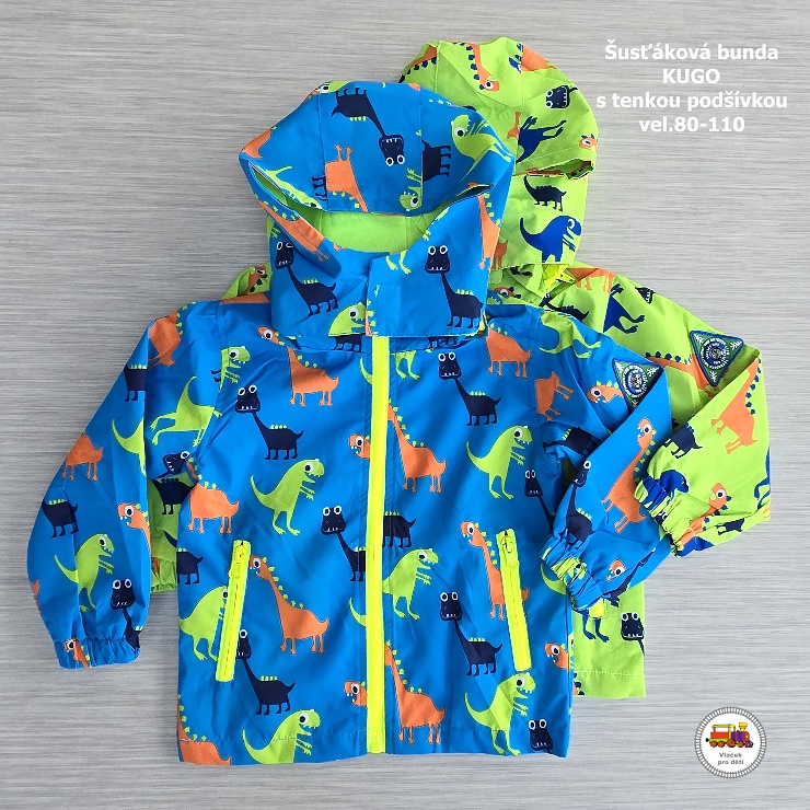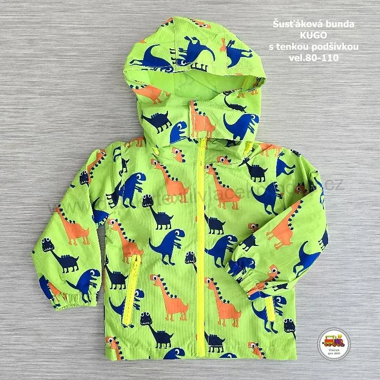 - Šusťáková bunda s tenkou podšívkou Kugo B2828 Dinosauři na zelené vel.110